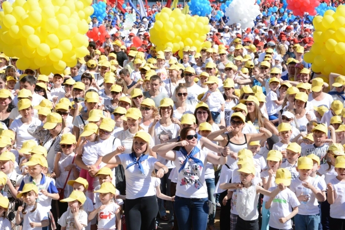 Главные герои праздника – воспитанники дошкольных образовательных учреждений, которые пришли на Красную площадь вместе со своими родителями, воспитателями, братьями и сестрами, – с большим усердием и огромным задором выполняли упражнения необычного для себя урока физкультуры на открытом воздухе.