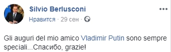 Сам политик отметил свой день рождения 29 сентября и опубликовал в Facebook запись с благодарностью за поздравления, заявив при этом, что у его друга Владимира Путина они всегда особенные.