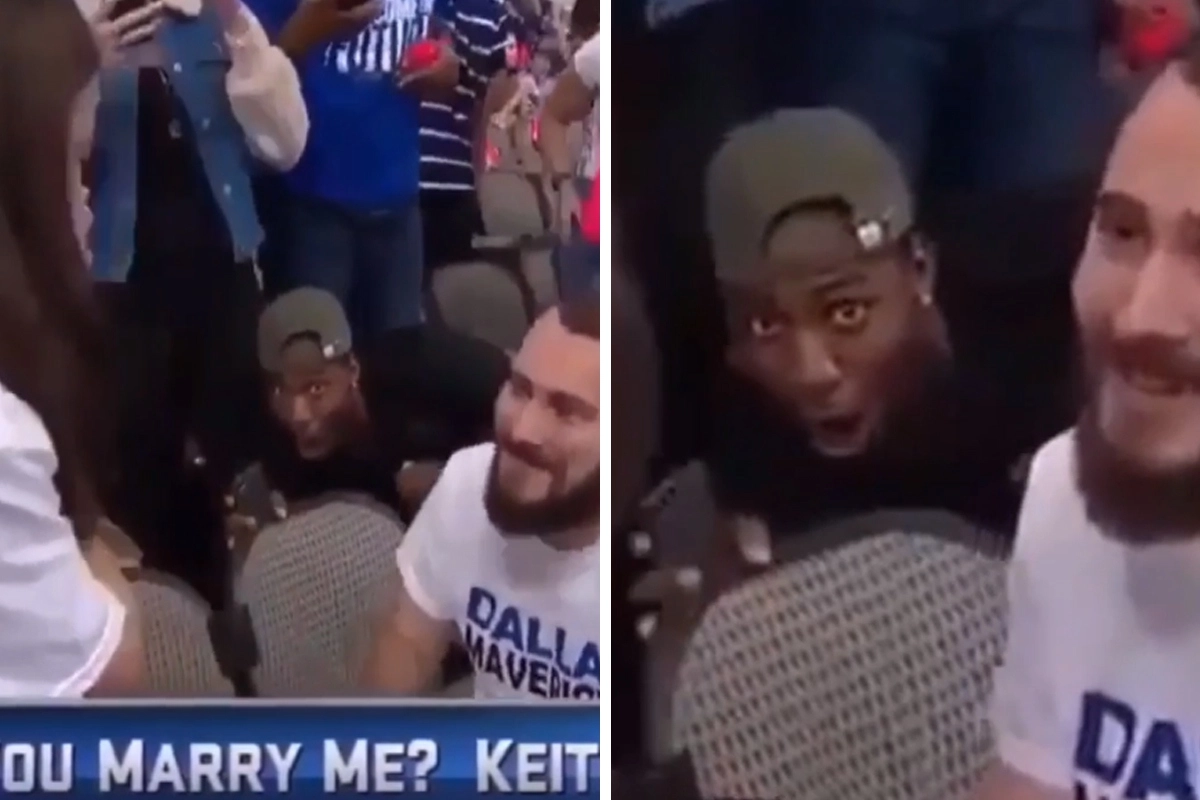 Парень, решивший сделать предложение своей девушке на глазах у всего стадиона, точно не ожидал, что он станет второстепенным героем вирусного ролика. Несмотря на трогательную реакцию девушки, все внимание пользователей Сети украл темнокожий парень, который очень эмоционально воспринял происходящее у него на глазах.