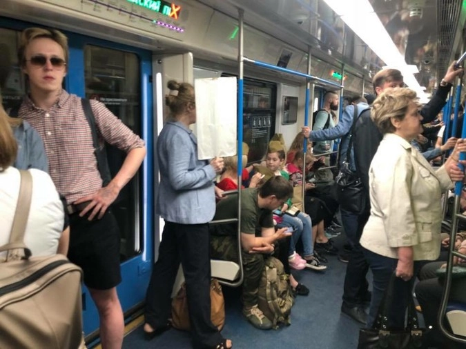 В метро наблюдаются полные вагоны людей, которые едут на «Бессмертный полк» целыми семьями.
