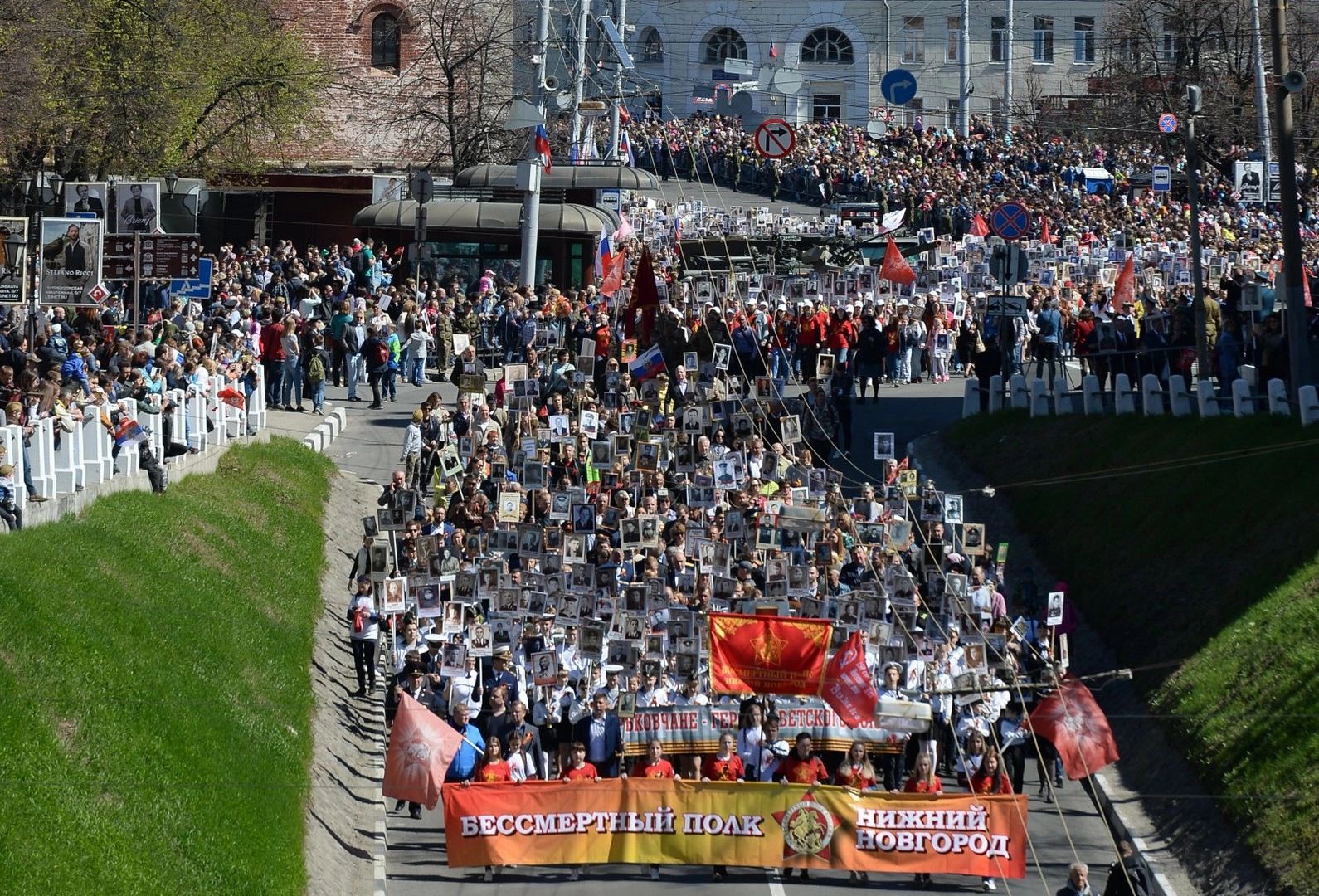 Около 30 тысяч человек прошли в колонне «Бессмертного полка» в Нижнем Новгороде, а всего в регионе с портретами героев своих семей прошли примерно 120 тысяч человек. «Шествие «Бессмертного полка» вселяет огромную надежду и оптимизм, веру в силы нашей исторической памяти и в то, что мы являемся подлинными наследниками поколения победителей», — отметил участвующий в акции глава региона Глеб Никитин.