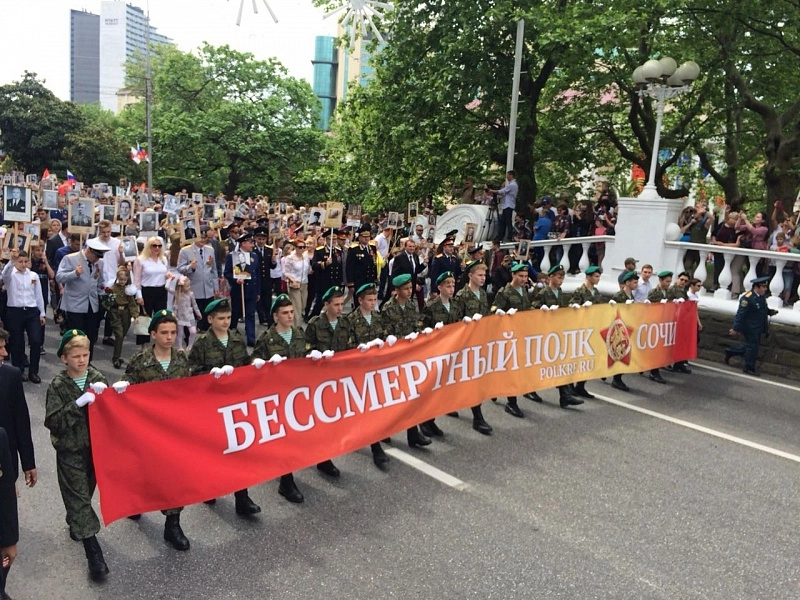 Рекордные 80 тысяч человек поучаствовали в акции «Бессмертный полк» в Сочи: под военные песни горожане прошли с портретами своих родственников, которые участвовали в Великой Отечественной войне. Колонна прошла от Зимнего театра до стелы «Подвиг во имя жизни» у парка «Ривьера».