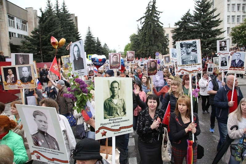 По всей России, от Калининграда до Камчатки, прошли шествия «Бессмертного полка»: сотни тысяч человек вышли на центральные городские улицы с портретами своих героических родственников, участвовавших в Великой Отечественной войне.