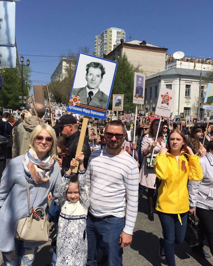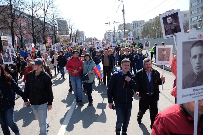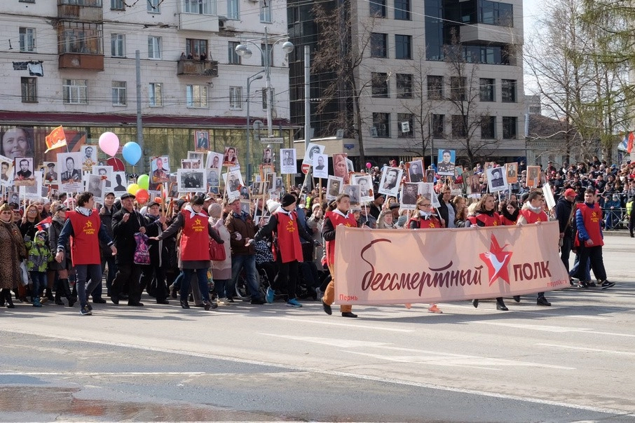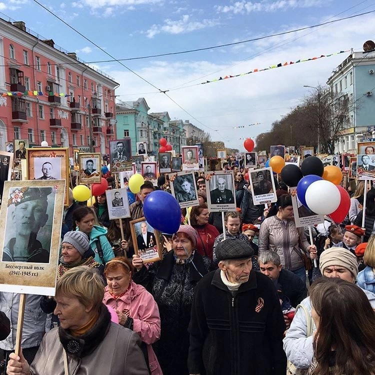 На улицах Ижевска в колонне «Бессмертного полка» прошлись в день Великой Победы порядка 30 тысяч горожан, пронеся в руках портреты своих дедушек и бабушек, прадедов и прабабушек, воевавших на фронтах Великой Отечественной войны и трудившихся в тылу.