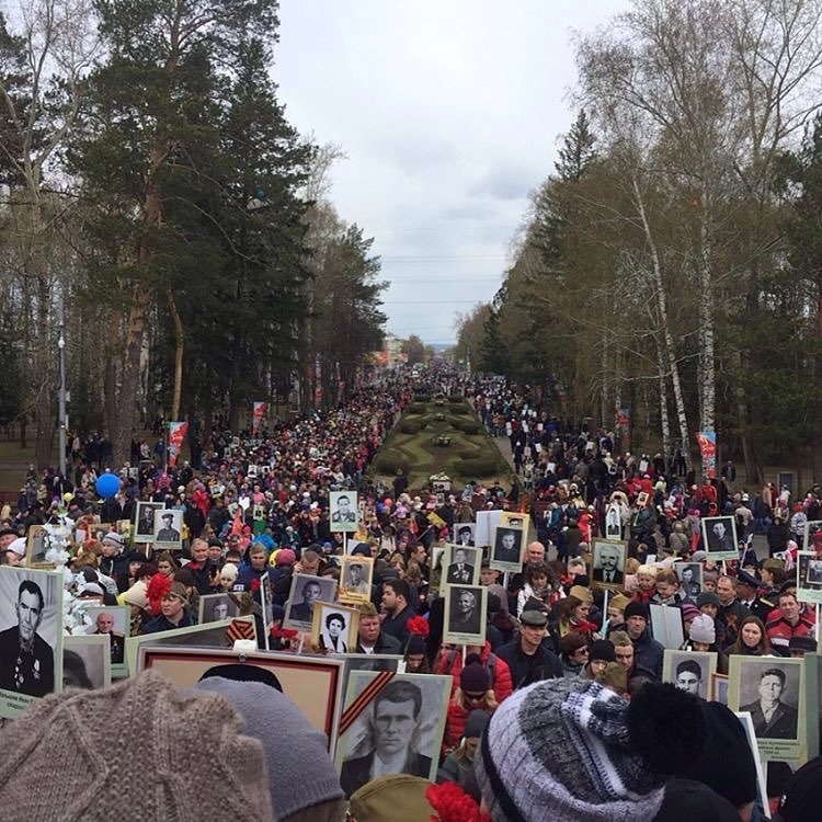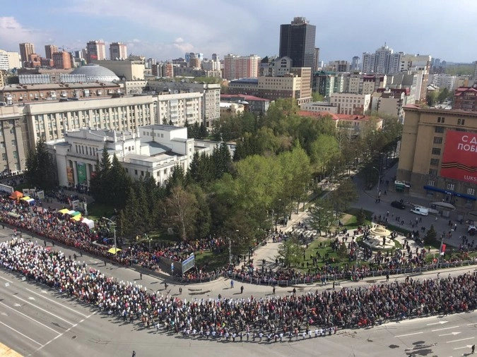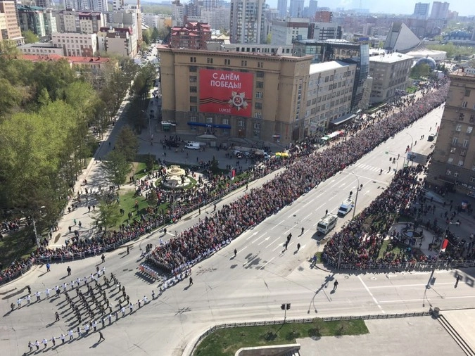 Рекордные 270 тысяч человек присоединились к «Бессмертному полку» в Новосибирске. По информации координатора полка Ирины Рудковской, участники акции начали собираться в точке старта шествия с 8 часов утра, а к началу движения колонна «Бессмертного полка» растянулась на два километра.