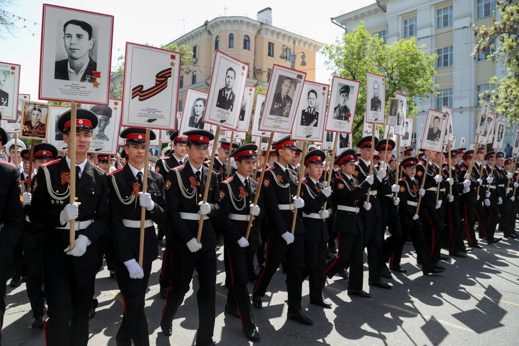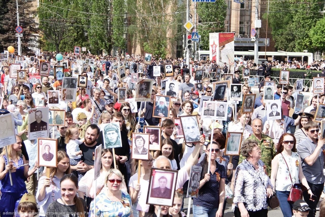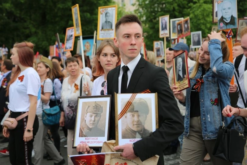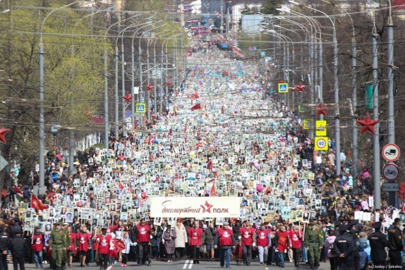 Во всех регионах России началась акция «Бессмертный полк», посвященная победе Советского Союза в Великой Отечественной войне против гитлеровской Германии. В шествии участвуют сотни тысяч людей. Они проходят колоннами по главным улицам городов и поселков страны, неся в руках портреты своих предков — участников ВОВ.