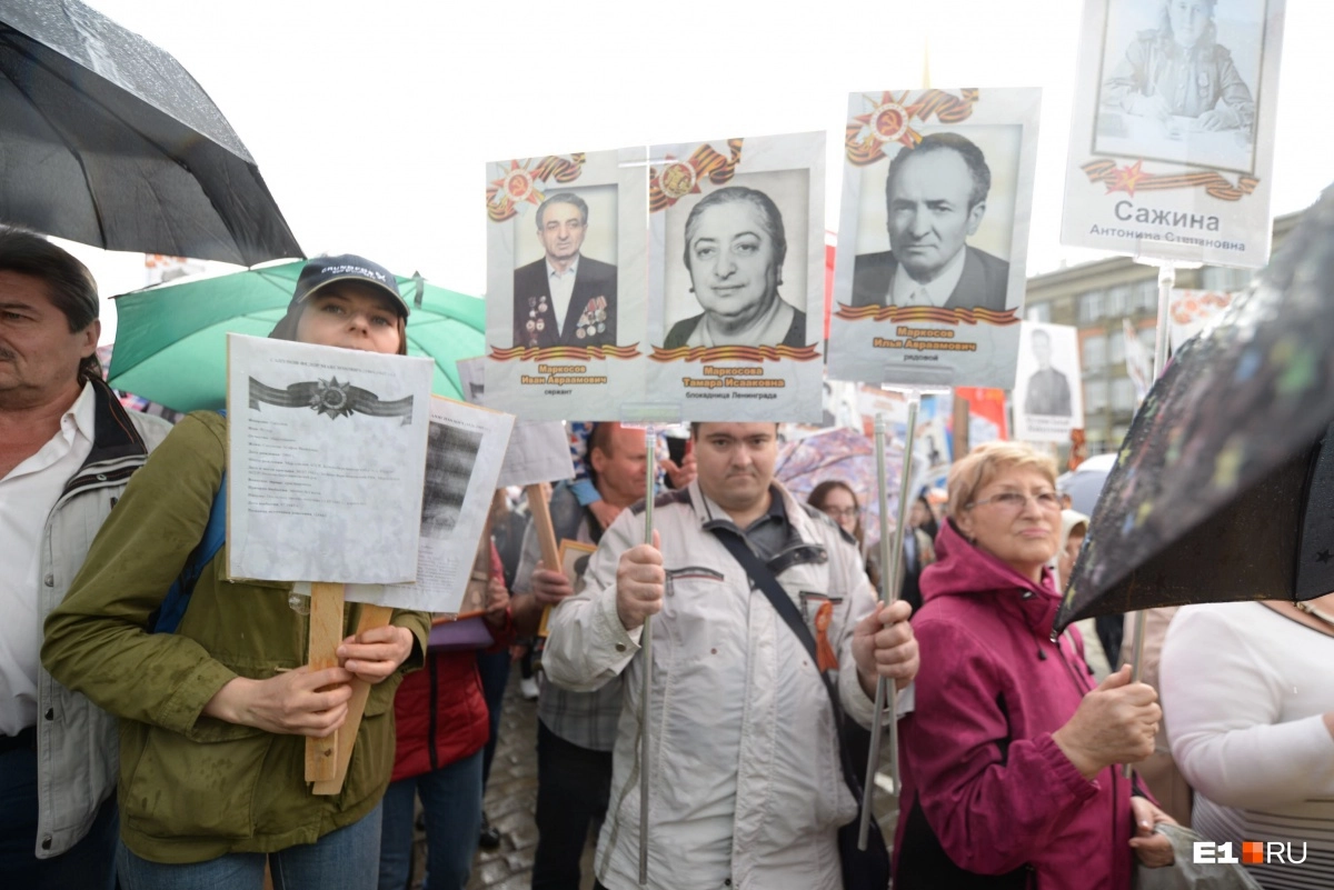 В Екатеринбурге на акцию вышли около 200 тысяч горожан. И это несмотря на проливной дождь! Люди начали строиться в колонну за два часа до начала шествия.
