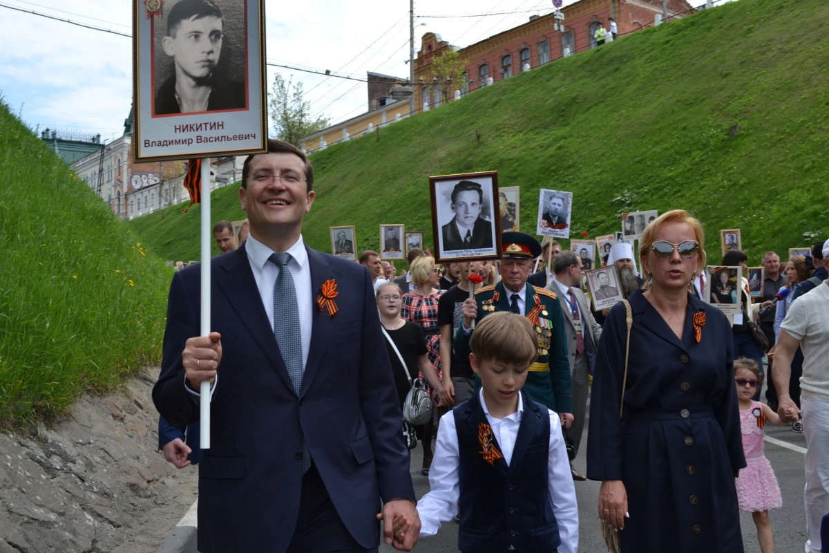 К шествию «Бессмертный полк» присоединились более 35 тысяч жителей Нижнего Новгорода. Вместе со всеми участие в акции принял губернатор региона Глеб Никитин. Глава Нижегородской области нес портрет своего деда Владимира Васильевича Никитина.