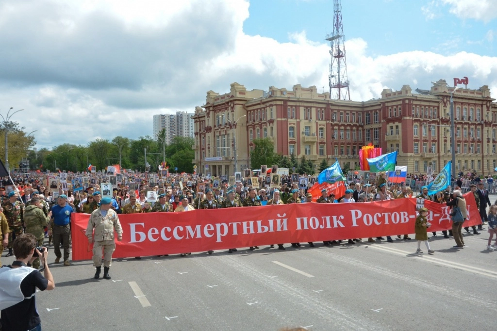 Свыше сотни тысяч ростовчан приняли участие в шествии «Бессмертного полка»: сразу после военного парада в честь Дня Победы колонны собрались в центре Ростова-на-Дону — и вышли на Театральную площадь.