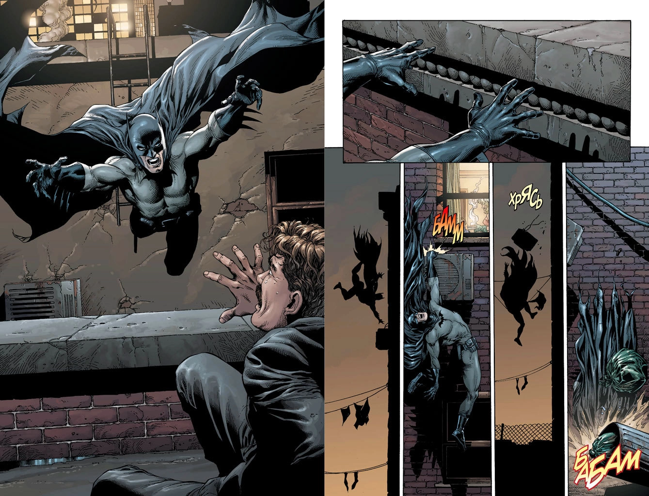 Разворот графического романа Джеффа Джонса и Гэри Фрэнка «Бэтмен: Земля-1. Книга 1»