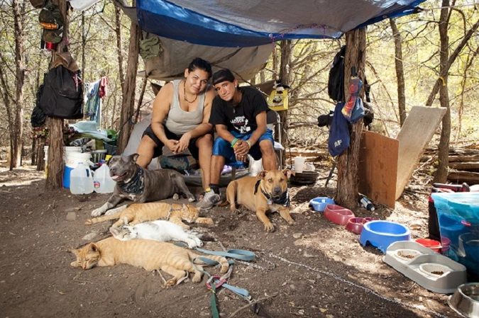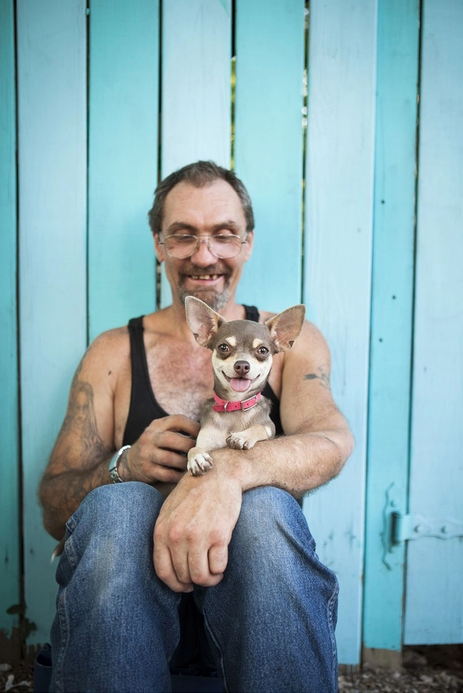 «Встречаясь с бездомными, мы рассказывали им о программе, а еще давали корм для животных», — говорит Нора. Фотограф хотела запечатлеть связь между человеком и его питомцем, показать, что связь эта универсальна — она никак не основывается на финансах или наличии дома.