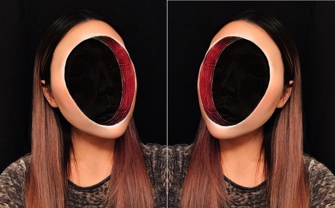 Обычно макияж используется для того, чтобы замаскировать недостатки и подчеркнуть достоинства. Но 31-летняя визажист Мими Чой (Mimi Choi) из Канады с этим не согласна. Её работы внушают ужас, повергают в шок и мгновенно становятся вирусными. Когда Мими берёт в руки кисти и краски, весь мир вокруг превращается в леденящую душу оптическую иллюзию. Особенно жутко смотрится её последняя работа — чёрная дыра вместо лица.