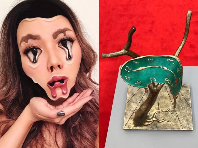 На эту мейкап-иллюзию Мими вдохновила бронзовая скульптура Сальвадора Дали «Сюрреалистический Ньютон». На создание страшного образа ушло полтора часа. И это не первая её работа, созданная по мотивам творчества великого и сумасшедшего Дали.