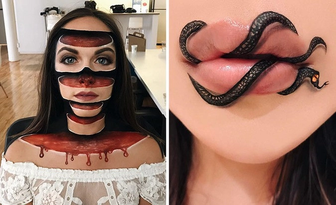 Раньше Мими Чой работала учительницей, а на досуге делала желающим свадебный макияж. Однажды девушку попросили создать образ на Хеллоуин, и это изменило всю её жизнь. За три года мастерица достигла фантастических успехов в искусстве визажа и прославилась на весь мир. На её страничку в Инстаграм подписано более 375 тысяч человек, которых Мими не устаёт пугать своими жуткими мейкап-иллюзиями.