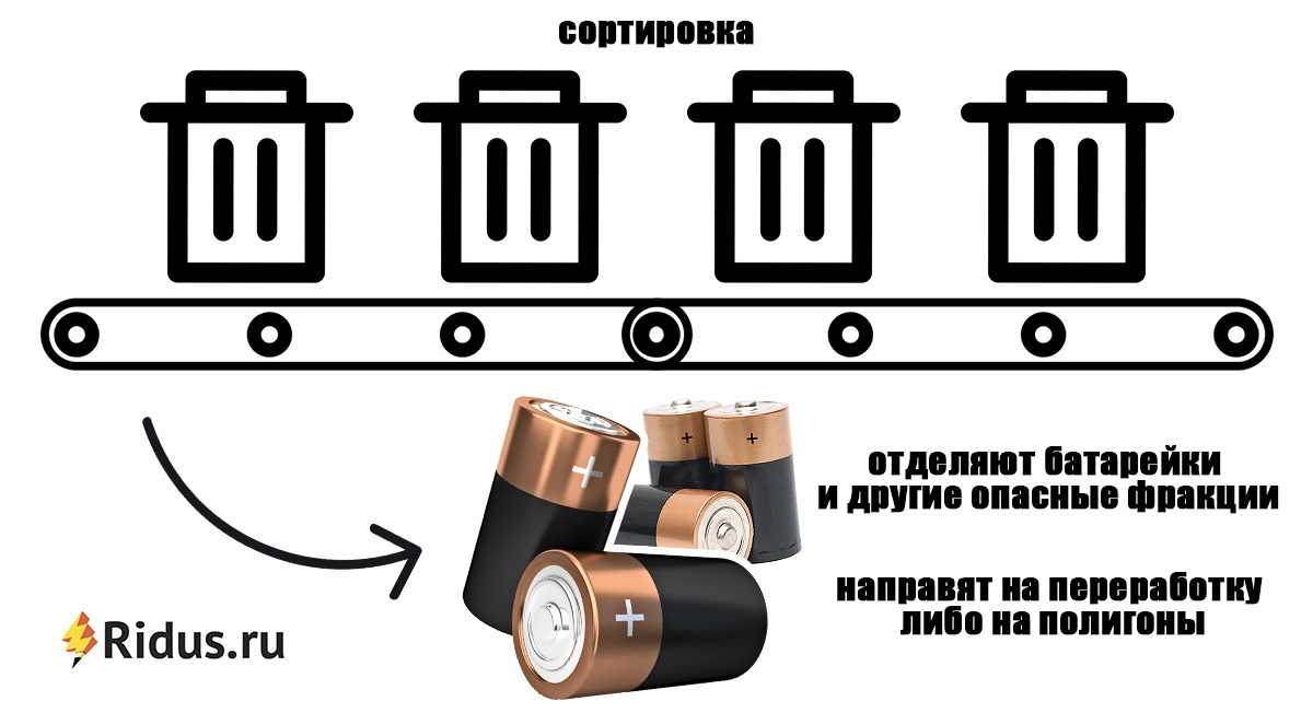 Первый этап сортировки — из ТКО отделят батарейки и другие опасные фракции. После эти отходы направят на переработку либо на специальные полигоны.