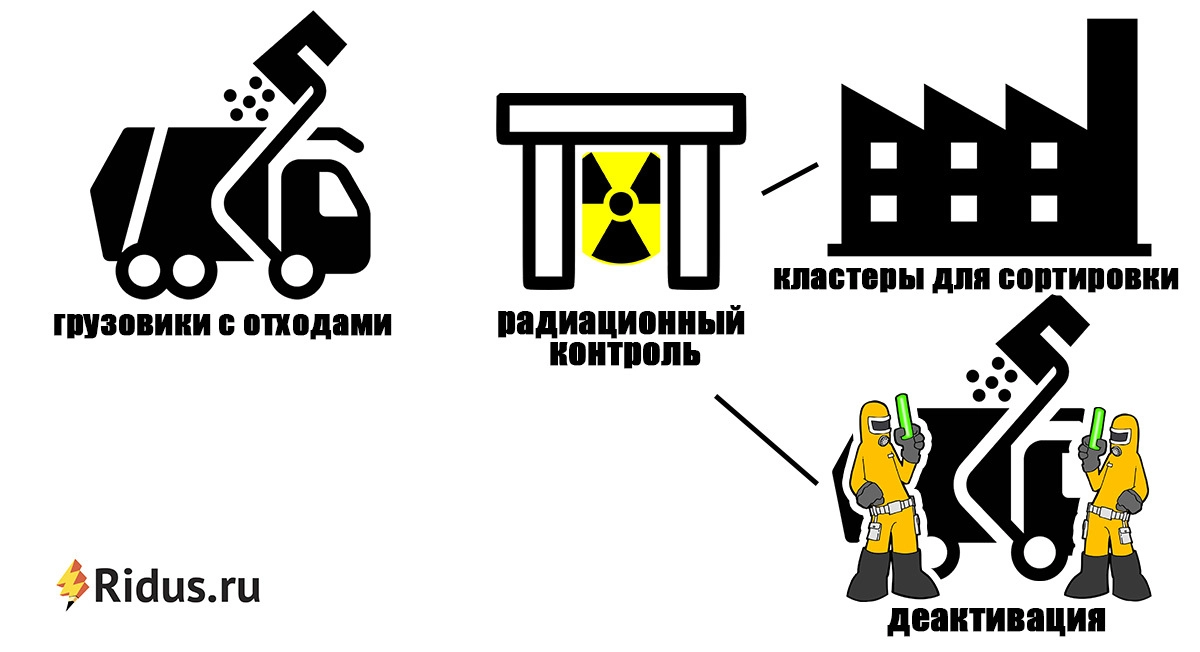 Сначала отходы поступят на сортировку в специализированные кластеры для переработки. На въезде грузовики с ТКО пройдут обязательный радиационный контроль. Если датчики засекут повышенную радиацию, то въезд автоматически заблокируется, а фонящий автотранспорт направят на спецстоянку для детального обследования и дальнейшей деактивации.