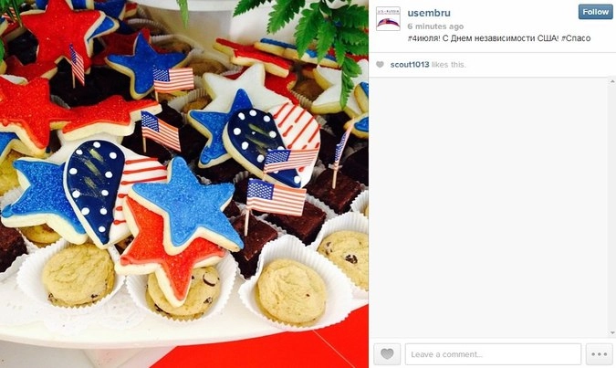 Необходимо пояснить, что в День независимости США, американские дипломаты традиционно зовут к себе самых выдающихся российских оппозиционеров, которые лучше остальных проводят западные интересы в России. А вот и печеньки, которыми угощали гостей американского посла