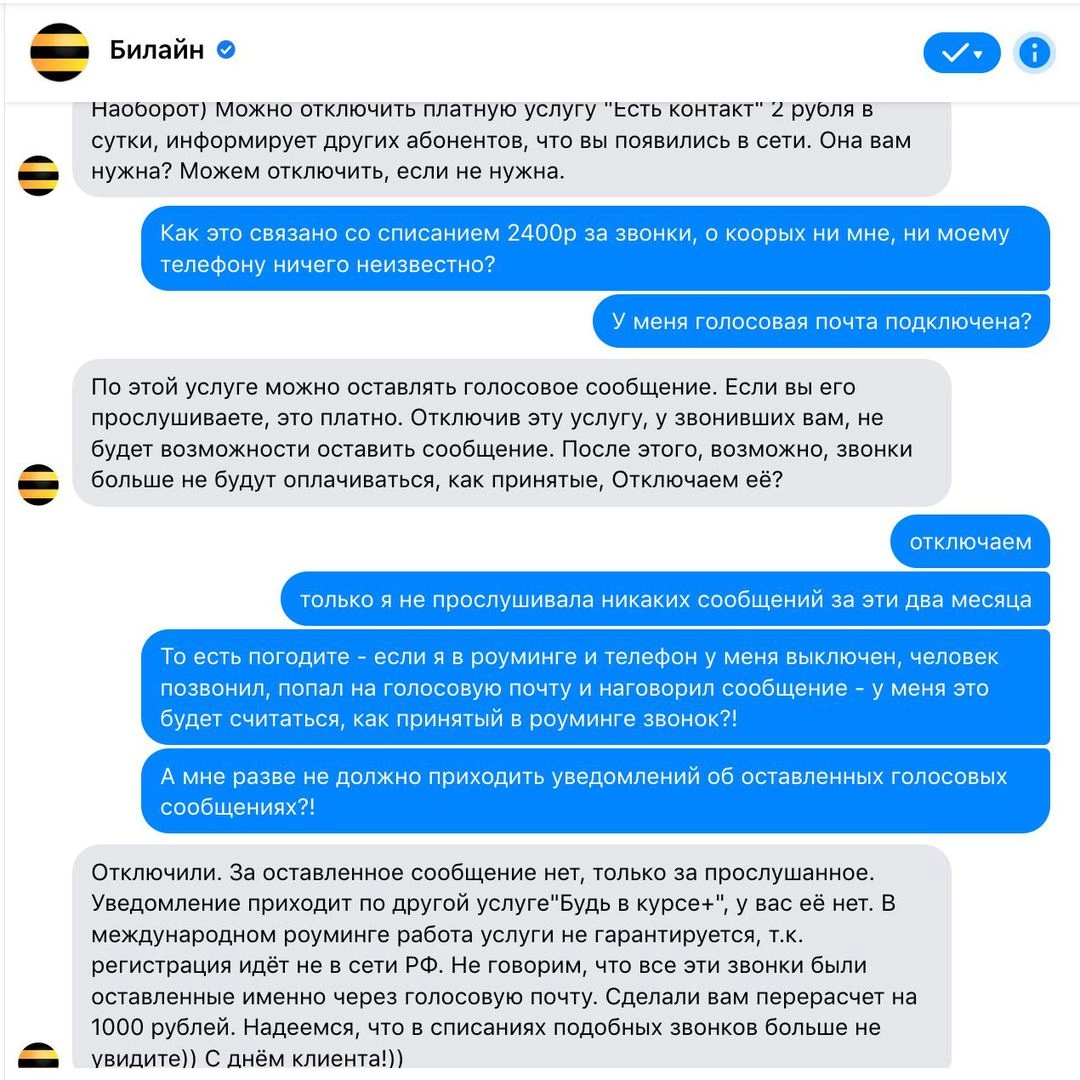 19 марта на связь с Вероникой Бирман вышли представители оператора сотовой связи. Они предложили ей сделать перерасчет за звонки в размере 1000 рублей, а загадочные списания денег попытались объяснить техническими причинами.