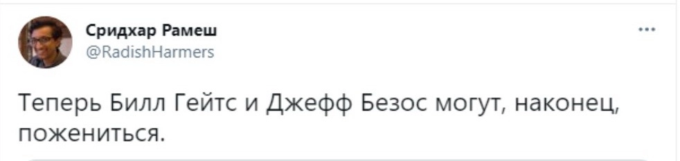 «Теперь Билл Гейтс и Джефф Безос могут наконец пожениться», — в шутку написал Сридхар Рамеш.