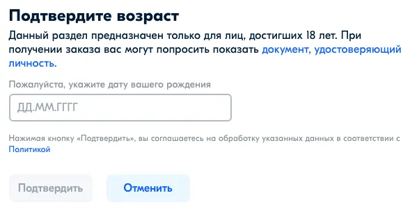 При попытке купить книгу из «запрещенок» OZON требует от незарегистрированных пользователей подтвердить возраст.