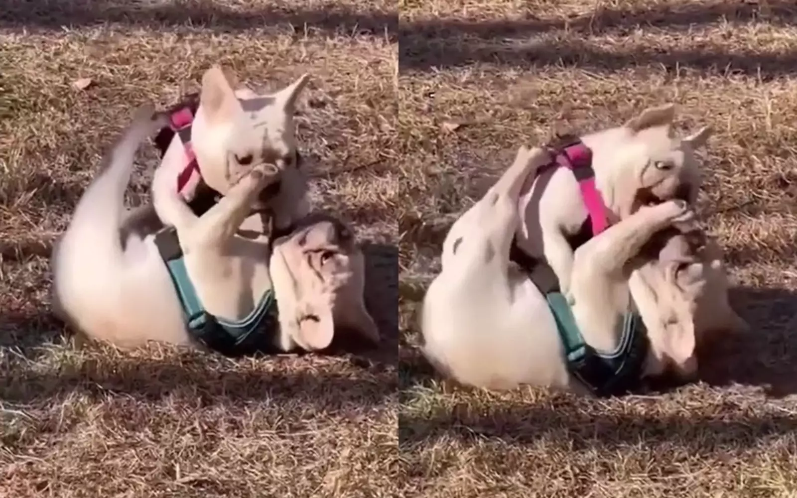 В этом ролике, который был опубликован в Telegram-канале «Собакен», вы увидите самое эпичное сражение за всю историю эпичных сражений. Два неуклюжих бульдога решили устроить битву, и она выглядит невероятно уморительно.