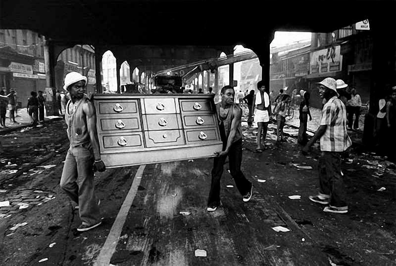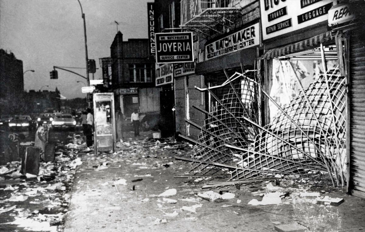 Беспредел и дикость охватили Бронкс, Гарлем, Бруклин, Куинс и Бродвей — эти районы тотально находились во власти бесновавшейся толпы. Первым делом грабежу подверглись магазины бытовой техники, затем вразнос пошли автосалоны, ювелирные лавки, магазины одежды, и уже в самом разгаре угара беззакония и безнаказанности обезумевшие чёрные добрались до аптек и продовольственных супермаркетов. Это к разговору о приоритетах и нужде маргинальных слоёв общества из гетто.