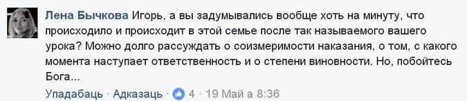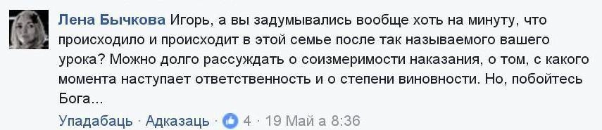 «В Белоруссии сегодня наказать кого-то — очень просто, сесть в тюрьму — еще проще. Но разве наказанием и принуждением заставишь людей полюбить белорусский язык? Я была в шоке от абсолютно отвратительных хештегов, под которыми Игорь Случак выложил письмо матери с извинениями. Я напомню, что это было два хэштега #яжемать и #языковой_инспектор. То есть, он отнес мать, которая принесла извинения ему, взрослому мужчине, преследующему ее больного ребенка, к категории тупых женщин. И с каких пор в Белорусcии появилась „языковая инспекция“? За какие-такие грехи белорусов это упало нам на голову?» — добавила она.