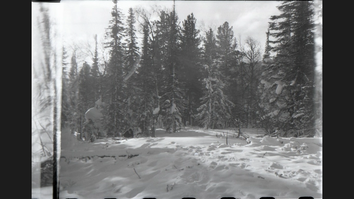 Два слова о моей последней находке. Это архивная фотография, вероятно сделанная руками студентов УПИ, которые принимали участие в поисковых работах в конце февраля или начале марта 1959 года. Кто-то (кто точно уже неизвестно) сделал снимок леса, в районе того самого кедра, где нашли первую партию погибших людей. Фотография не из тех, которые часто публикуют.