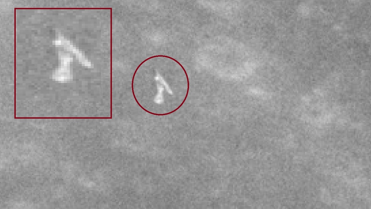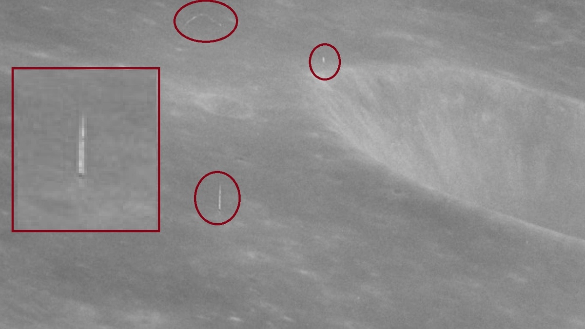 На широкоформатных снимках видны многочисленные летательные объекты, которые повсюду сопровождали спускаемый модуль «Аполлон-11». Часть из них похожа на обычные ракеты, с реактивными двигательными установками. Сразу же видно, что все объекты техногенные и сделаны по современным технологиям. Некоторые их этих ракет просто огромны.