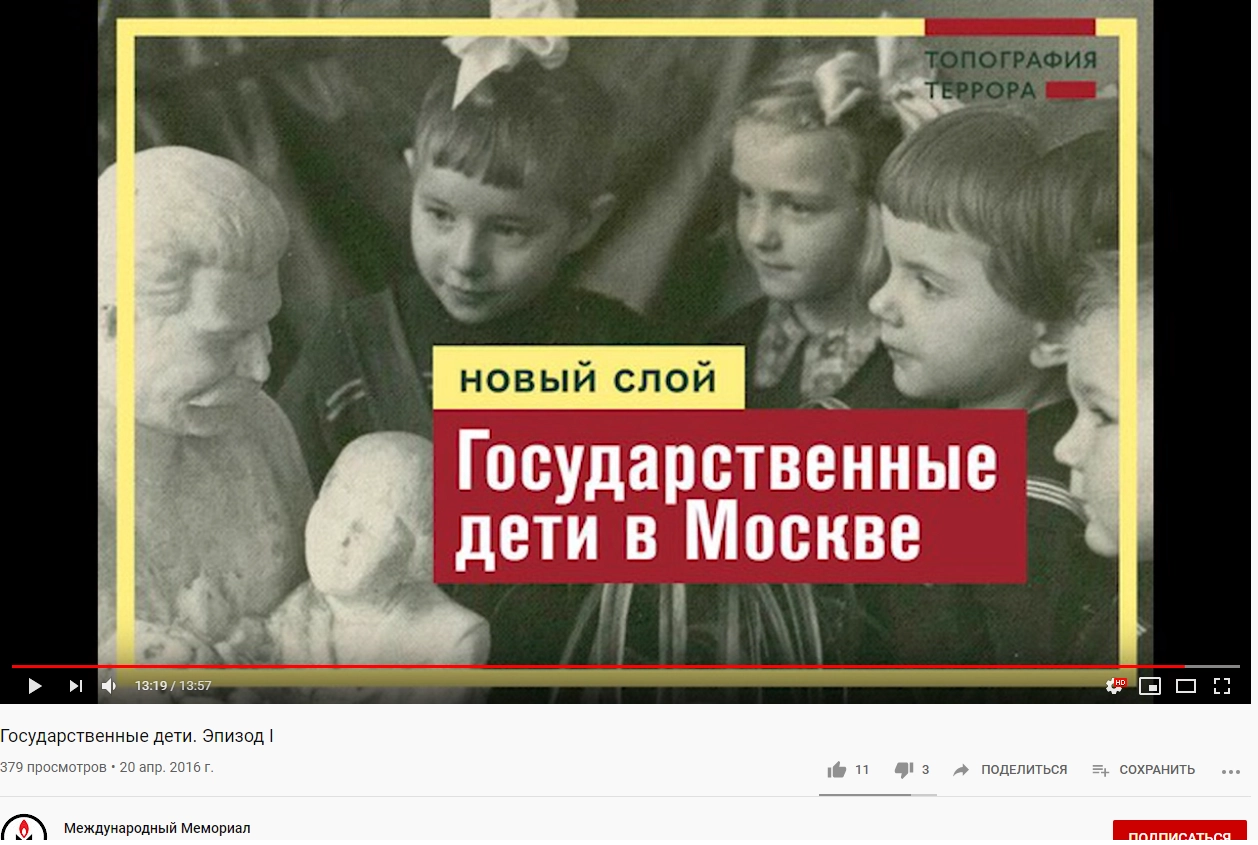 На снимке, который обнаружила Иванкина, изображена ее мама в 1950 году в раннем детстве, среди воспитанников образцово-показательного детского сада Лефортовского района Москвы, который посещали дети руководящих работников столицы. Но в ролике «Государственные дети Москвы», опубликованном обществом «Мемориал» на YouTube в рамках проекта «Топография террора», им проиллюстрировали сюжет о столичных беспризорниках.