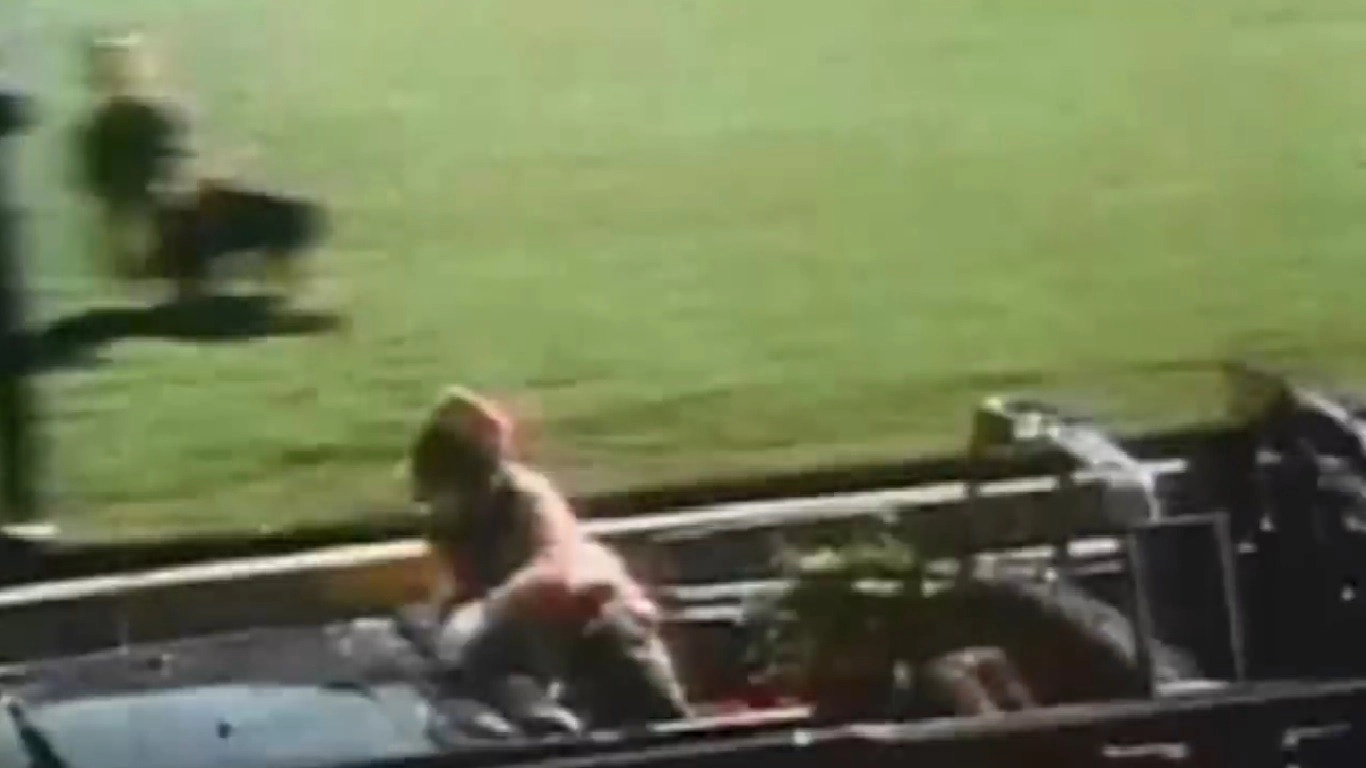 Ровно в 12:30 из карабина Каркано M91/38 калибра 6,5 мм начал стрелять злосчастный Ли Харви Освальд. Стрелок он был плохой, поэтому первые пули только ранили Кеннеди. И вот этот самый момент, каким то чудом, попал на кинопленку. Эти кадры были, случайно сделаны очевидцем Абрахамом Запрудером.