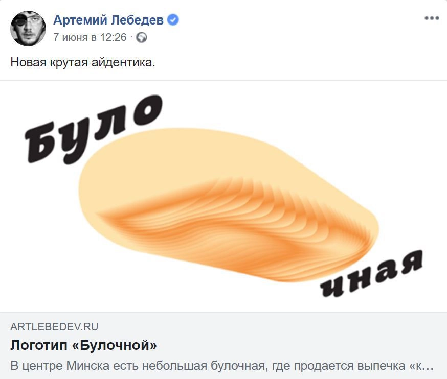 Подписчики блогов и страниц в соцсетях дизайнера Артемия Лебедева отфотошопили один из логотипов его студии, выполненный для булочной в центре Минска. «Новая крутая айдентика», как представил ее сам Лебедев, показалась многим блогерам нелепой, поэтому комментарии и реплики носили в основном насмешливый характер.