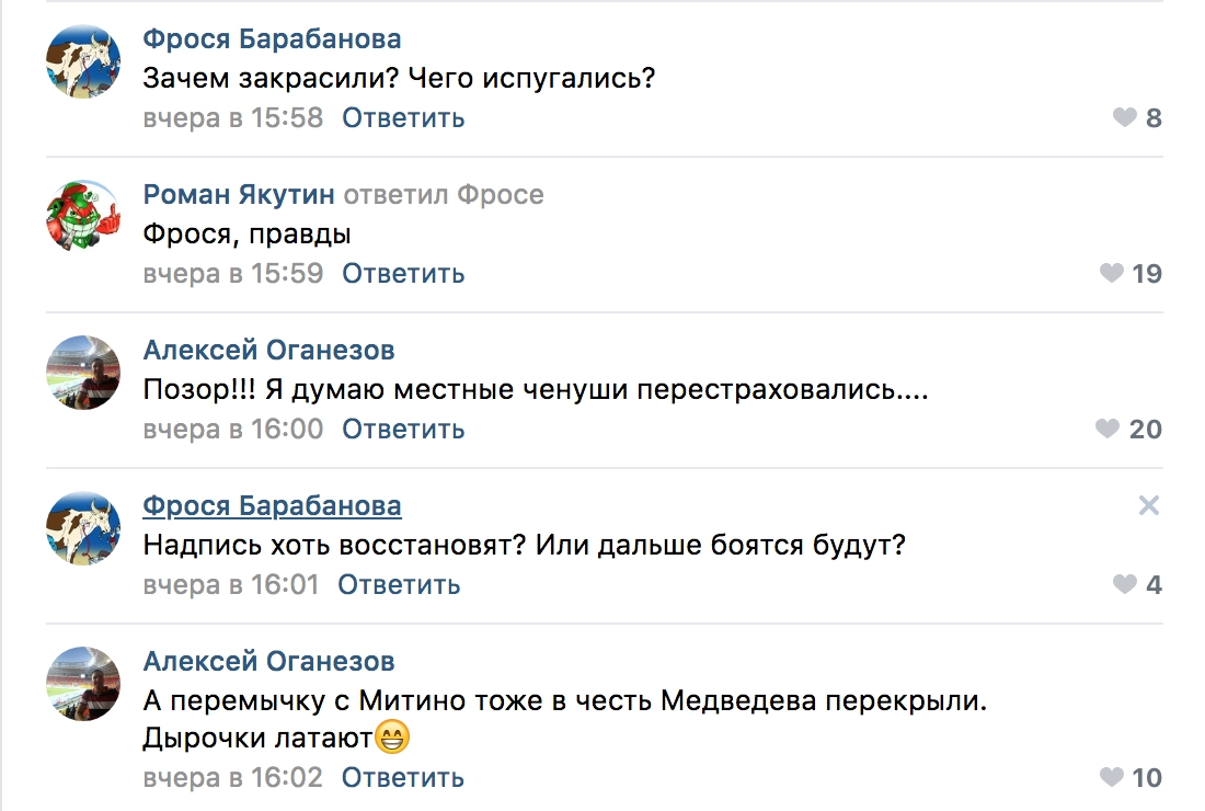 Вот именно эту строчку закрасили к приезду Дмитрия Анатольевича и теперь стена выглядит так.