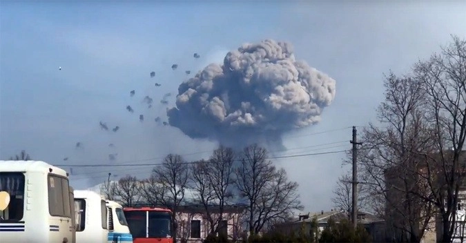 В настоящее время происходят одиночные взрывы различной интенсивности. С целью окончательной ликвидации очагов возгорания применяются два пожарных танка. Воду подвозят три пожарные машины. На станции Шебелинка, находящейся недалеко от склада, дежурят два пожарных поезда.