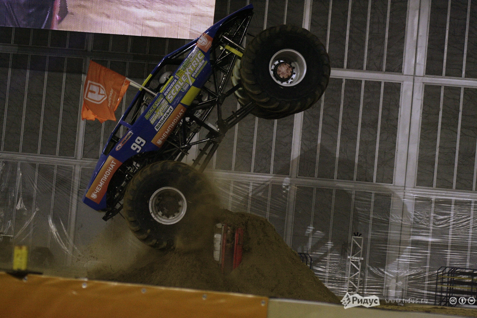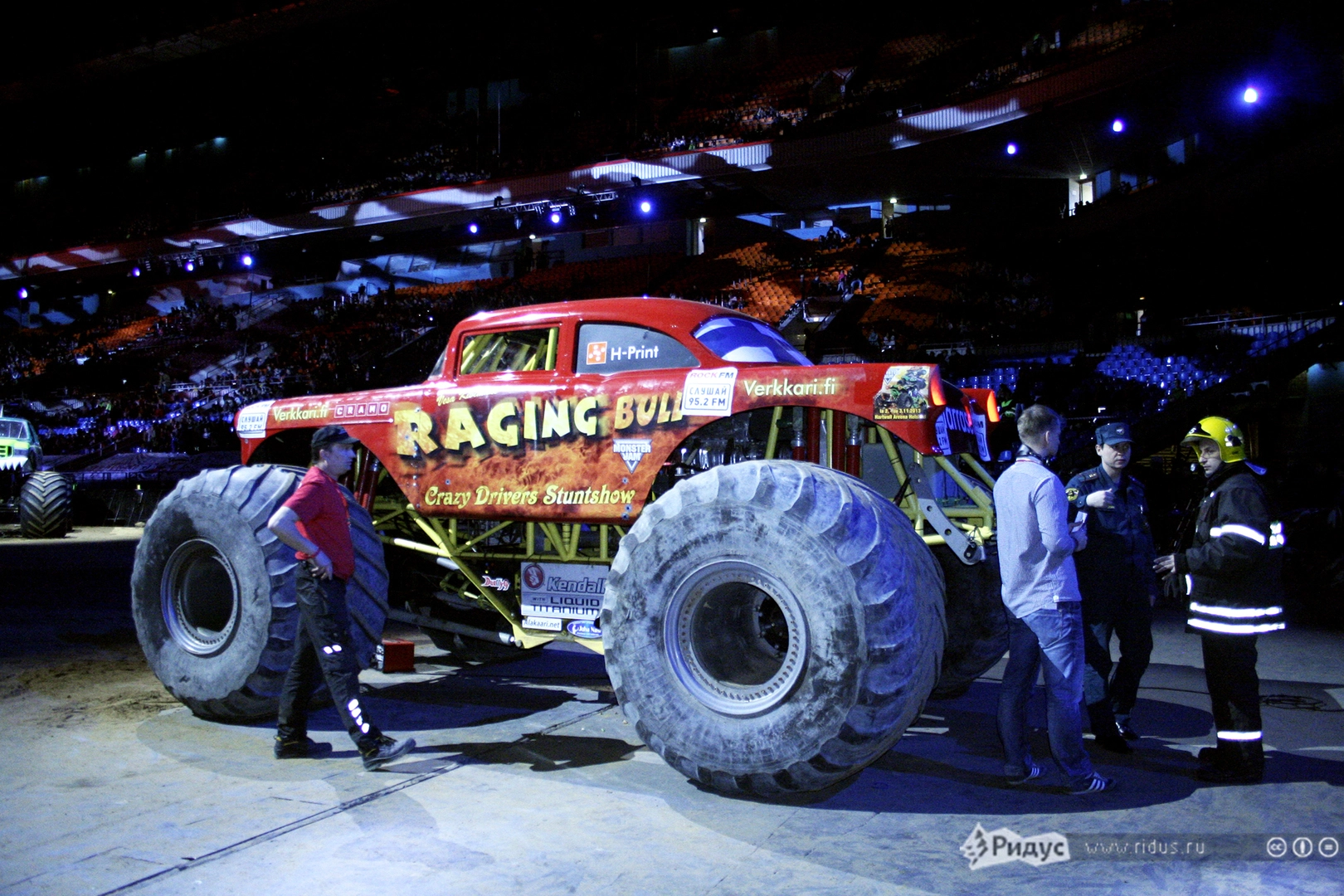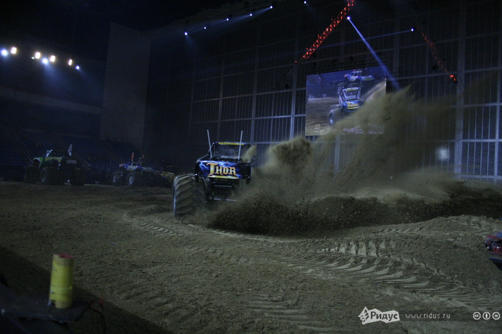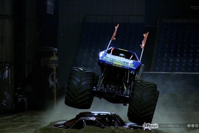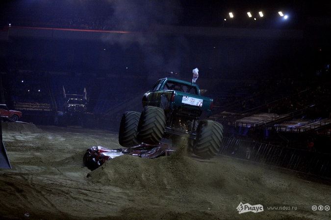 В России многотонные автомобили «Monster Truck» чаще называют «бигфутами». При виде этих величественных машин с невероятно огромными колесами, действительно невольно возникает ассоциация с монстрами, для которых, кажется, не существует никаких естественных помех и преград. Несколько тысяч зрителей, собравшихся на арене СК «Олимпийский» в Москве, в течение часа с небольшим наблюдали за невысокими полетами грузовиков и мотоциклов на специально приготовленной для мероприятия песчаной трассе.