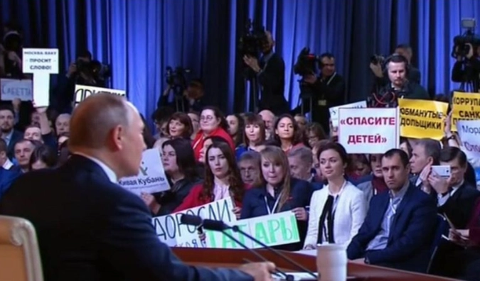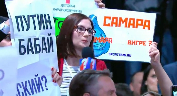 — Давайте дадим слово девушке с плакатом «Путин бай-бай».