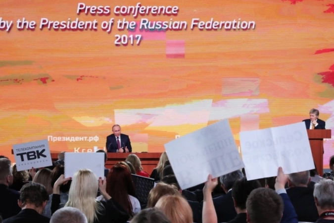 Пресс-конференция подошла к концу: Путин просит журналистов, которые не успели задать свои вопросы, «не сердиться». Глава государства подчеркнул, что он всегда готов прислушаться к голосу журналистского корпуса и высоко оценивает роль и значение российской прессы в жизни страны.