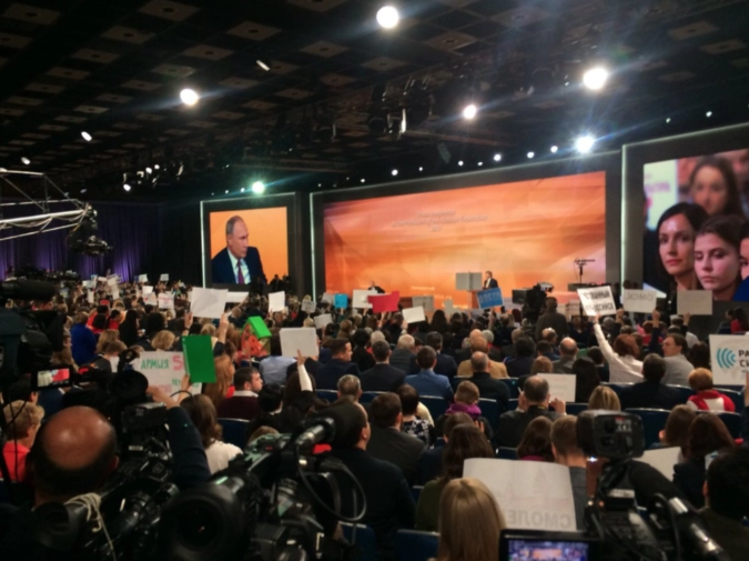 Тринадцатая по счету большая пресс-конференция Владимира Путина прошла в столичном Центре международной торговли: более полутора тысяч представителей федеральных, региональных и зарубежных СМИ задали главе государства злободневные вопросы.