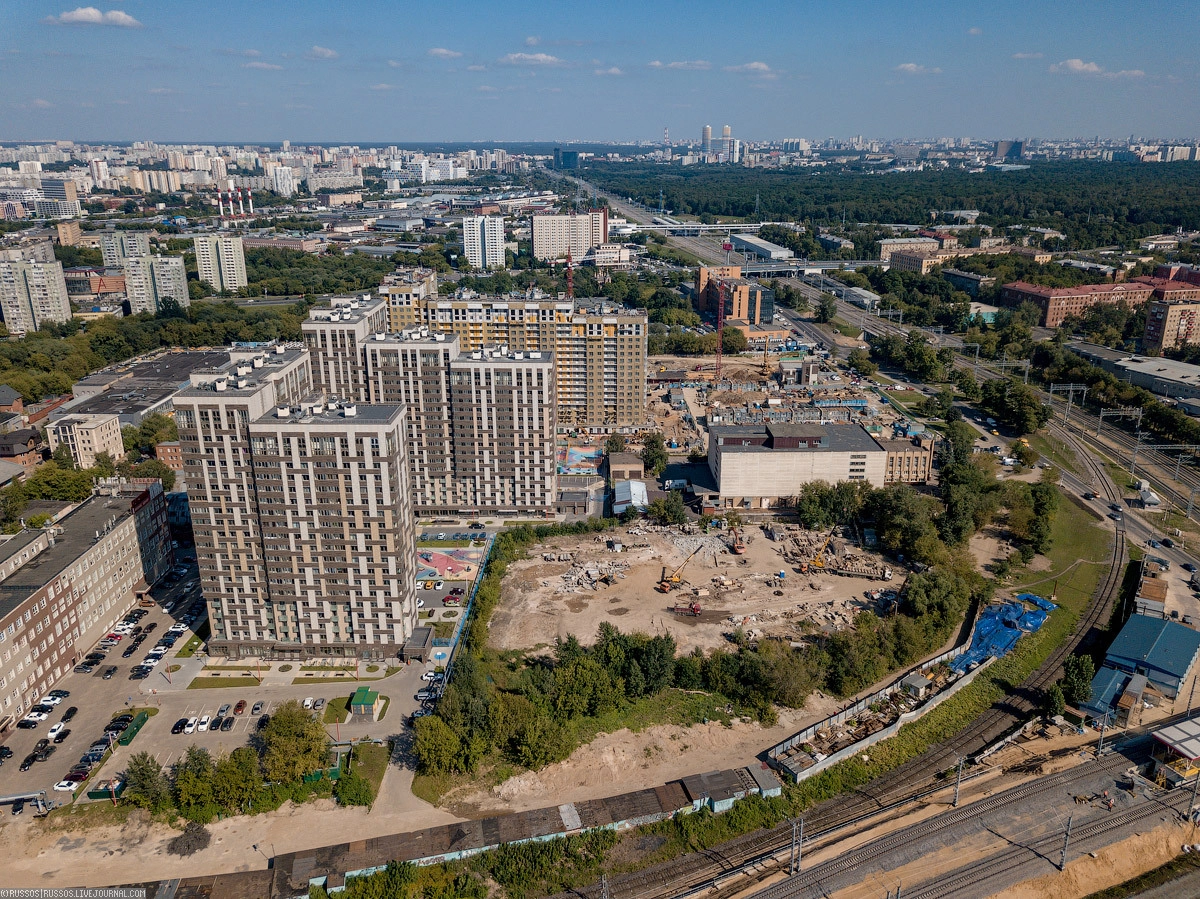 1. Строительная площадка жилого комплекса «Поколение», перед ним бывшая строительная площадка с вентиляционным стволом станции «Окружная».