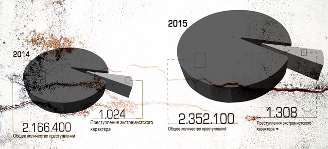 Экстремизм в России, по данным МВД, крепнет год от года, что позволяет всем заинтересованным лицам говорить о постоянно растущей угрозе, несмотря на то, что в общем объеме преступности он занимает всего 0,06 процента.