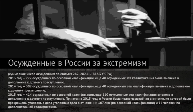 По сведениям аппарата Верховного Суда РФ, количество осужденных только по 282 статье УК ежегодно прирастает почти вполовину.