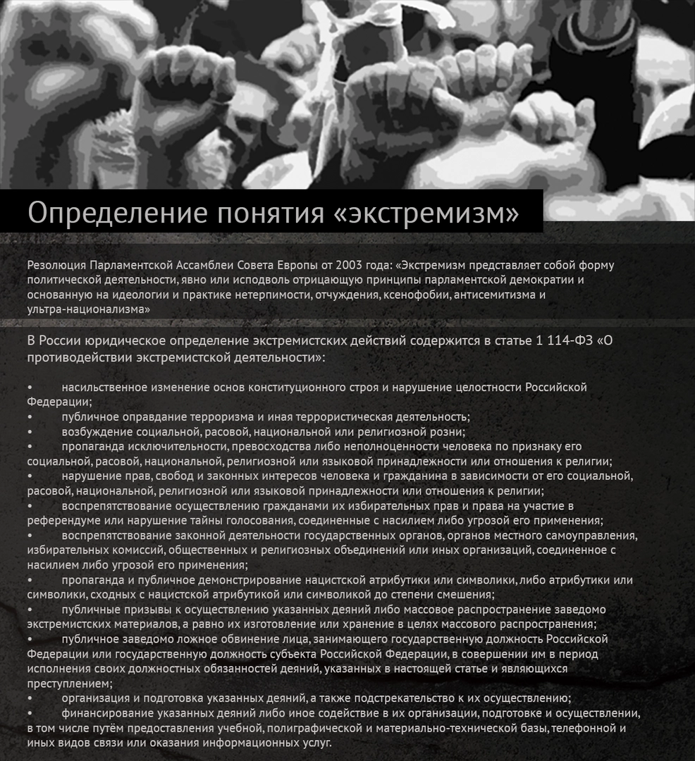 Однако, как показывает практика, экстремизм зарождается в основном на бумаге. Ведь столь расплывчатое тематическое законодательство надо еще поискать. Даже самому понятию «экстремизм» нет четкой трактовки.
