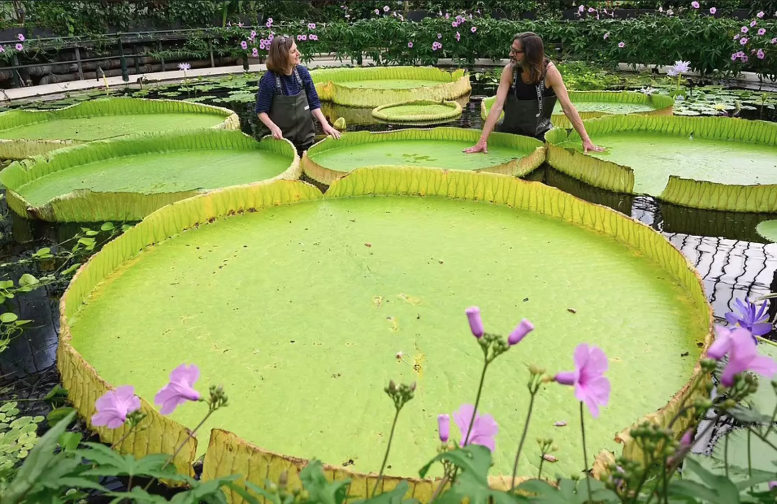Новую гигантскую кувшинку теперь можно увидеть бок о бок с двумя другими видами виктории в Королевских ботанических садах Кью.