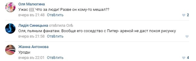 Пользователи в Сети осудили вандалов и вспомнили подобный случай в 2016 году, когда фанаты «Спартака» испортили граффити с Боярским перед матчем с «Зенитом». Они написали на шарфе, который держит актер, нецензурное слово.