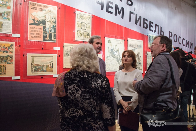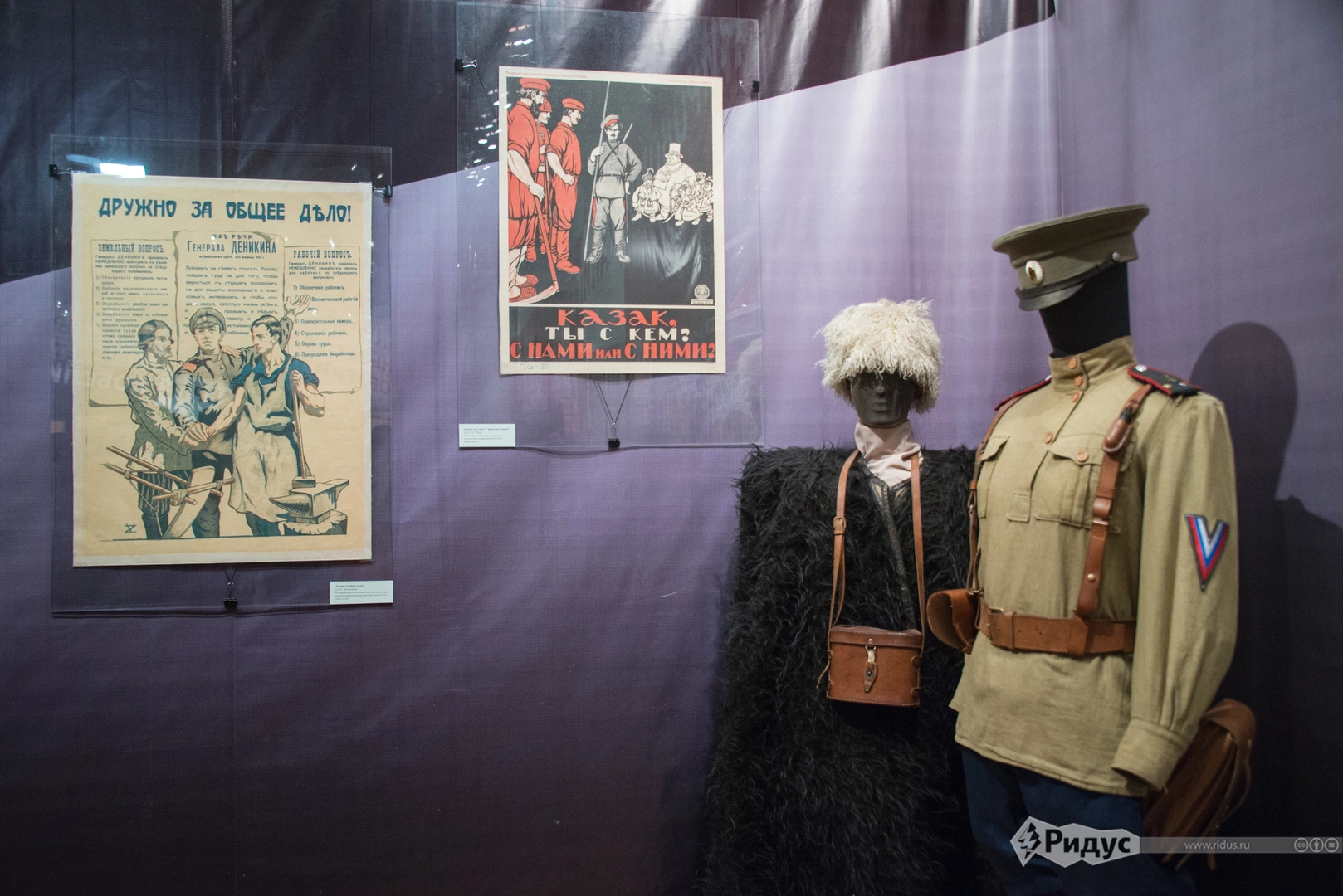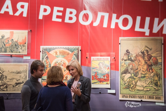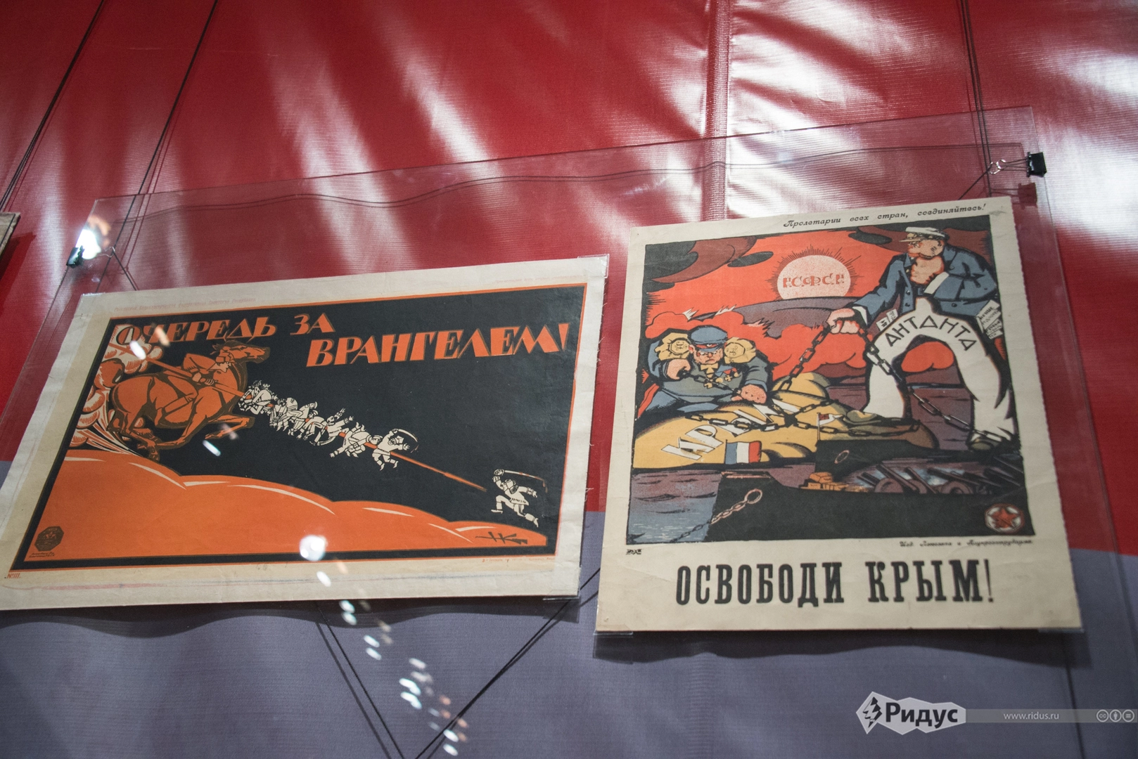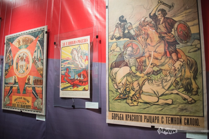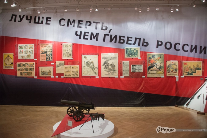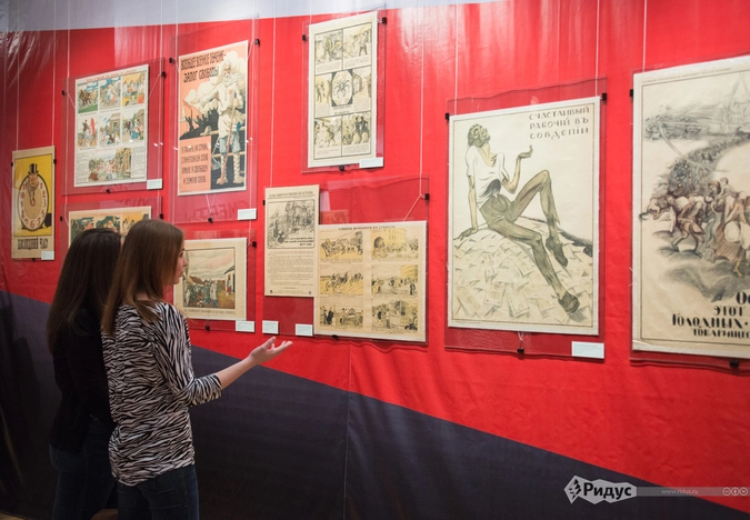 В четверг, 30 октября Музее современной истории России открылась выставка, посвященная агитационному плакату времен Гражданской войны 1918−1922 гг. На экспозиции представлены раритеты из фондов Музея современной истории России: коллекция уникальных плакатов «красного» и «белого» движений, боевое оружие, знамена и форма противоборствующих сторон.