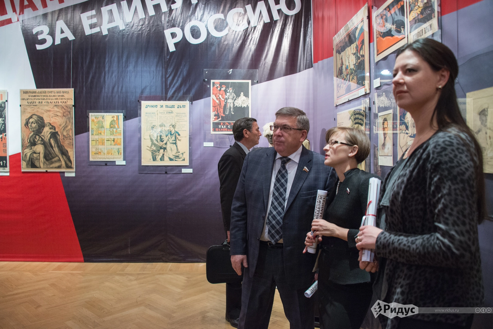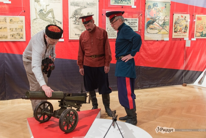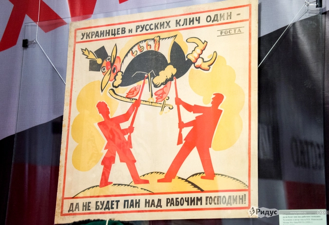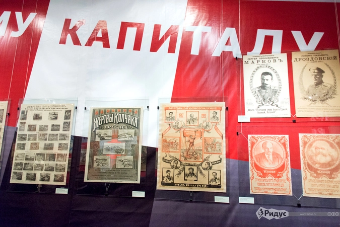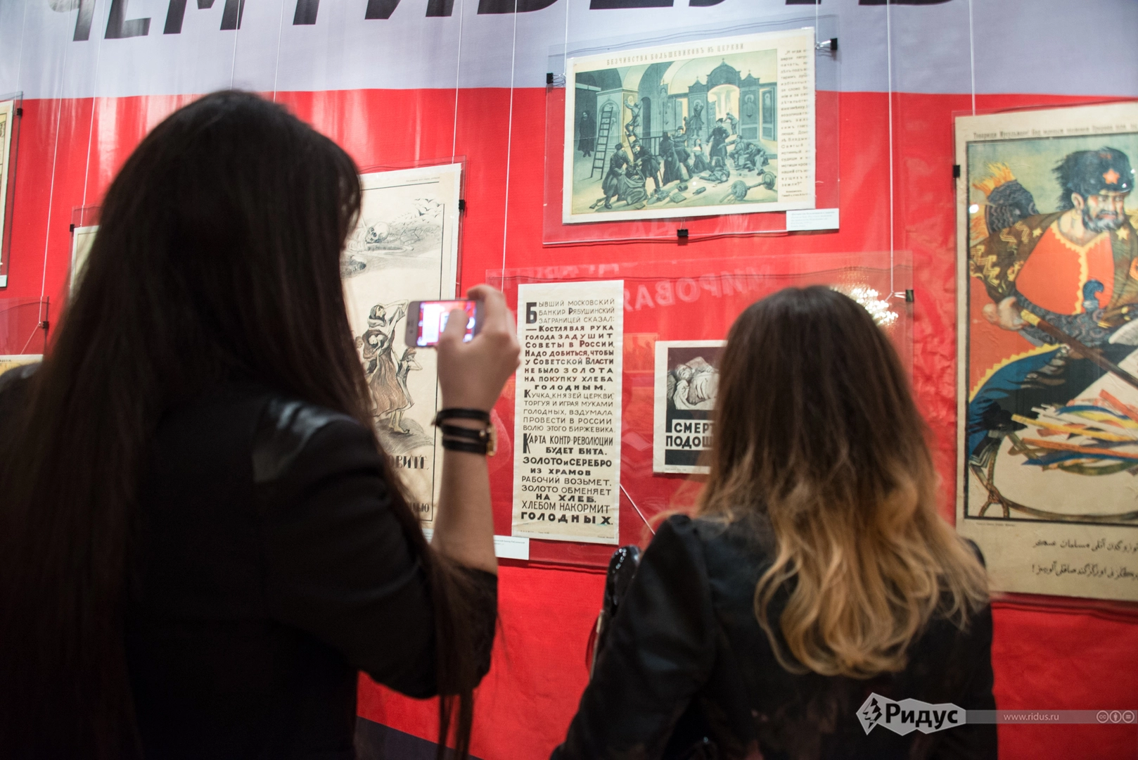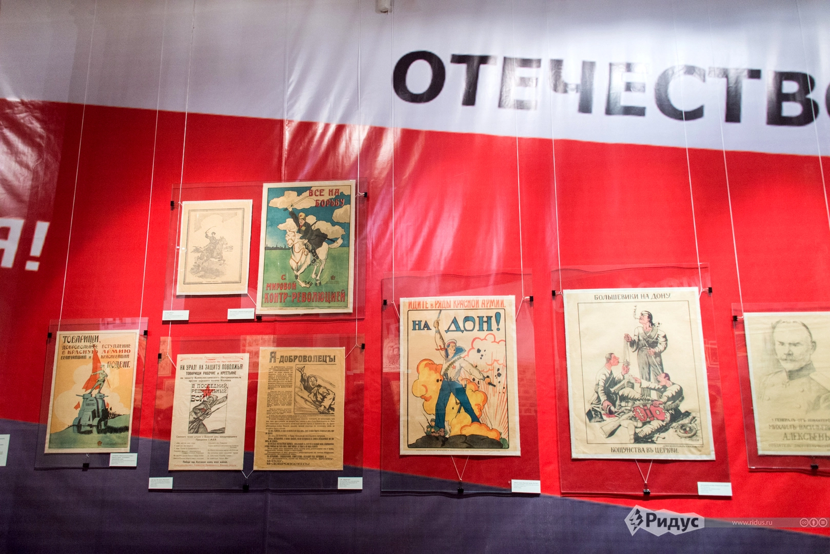 В четверг, 30 октября Музее современной истории России открылась выставка, посвященная агитационному плакату времен Гражданской войны 1918−1922 гг. На экспозиции представлены раритеты из фондов Музея современной истории России: коллекция уникальных плакатов «красного» и «белого» движений, боевое оружие, знамена и форма противоборствующих сторон.