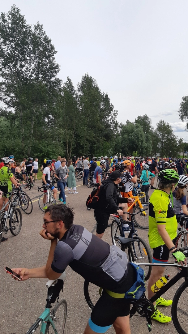 Но уже на подъезде стало понятно, что шанс есть. Велосипедисты стекались со всех сторон. Одни приезжали по дорогам, другие выбирались из парков, кто-то привозил технику на машинах. Участники выстраивались один за другим по всему кольцу.