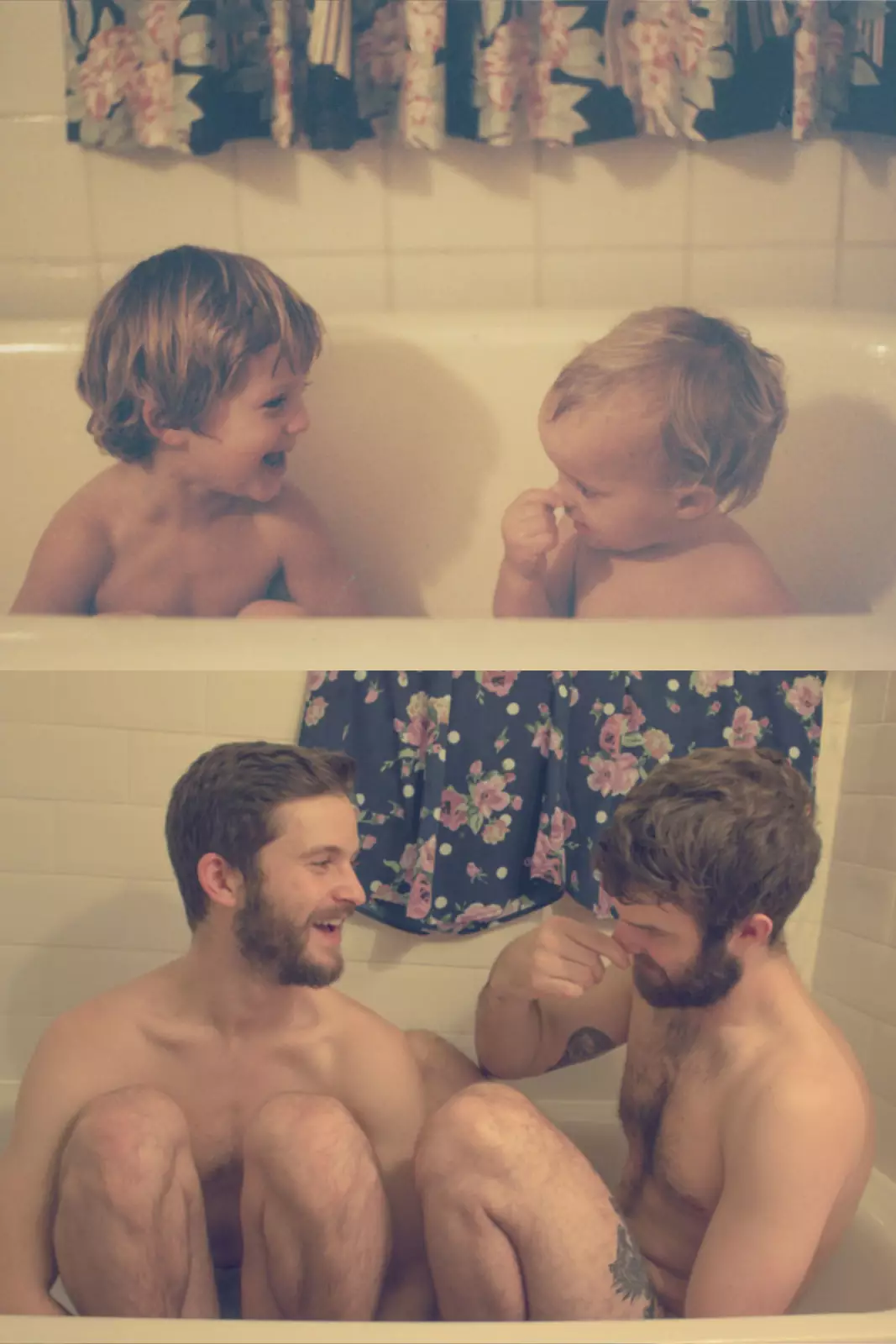 Братьям удалось повторить любимые фото из детства практически точь-в-точь, вплоть до одинаковой одежды или ее отсутствия в некоторых случаях. Разница была только в возрасте братьев, из-за которого их новые фотографии выглядят очень забавно и мило. Взрослые бородатые мужчины, которые ведут себя как дети, хоть и кажутся немного неуклюжими, но все равно вызывают широченную улыбку.