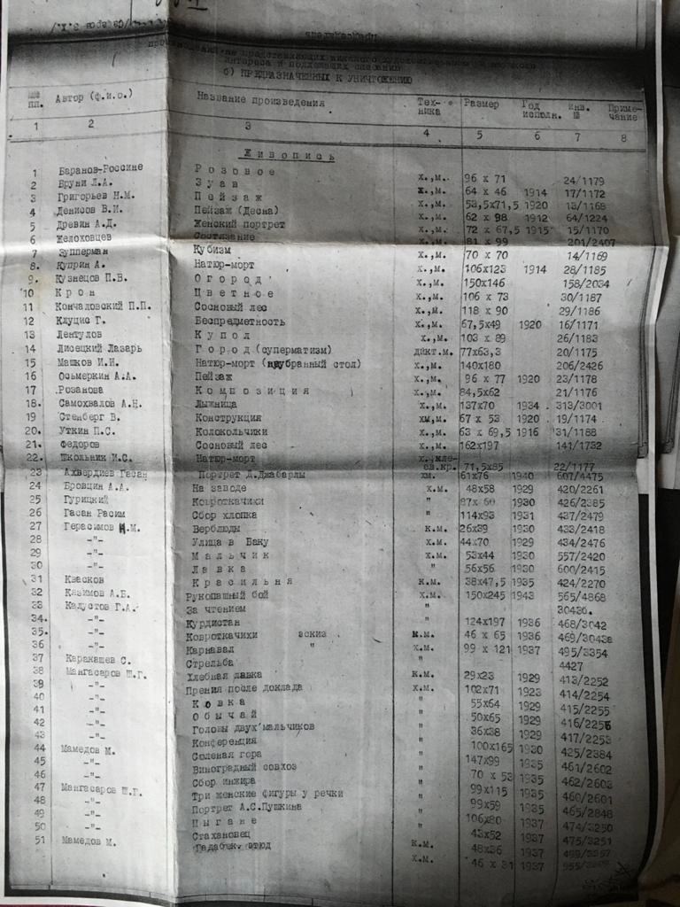 Наргиз Халиловой удалось спасти часть работ, которые не успели быть разорваны и сгореть в огне. По просьбе художника она укрыла их и сохранила.