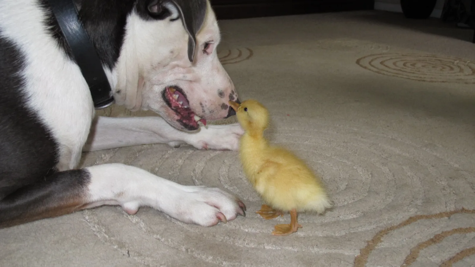 Брошенный мамой утенок нашел неожиданного друга — огромного пса